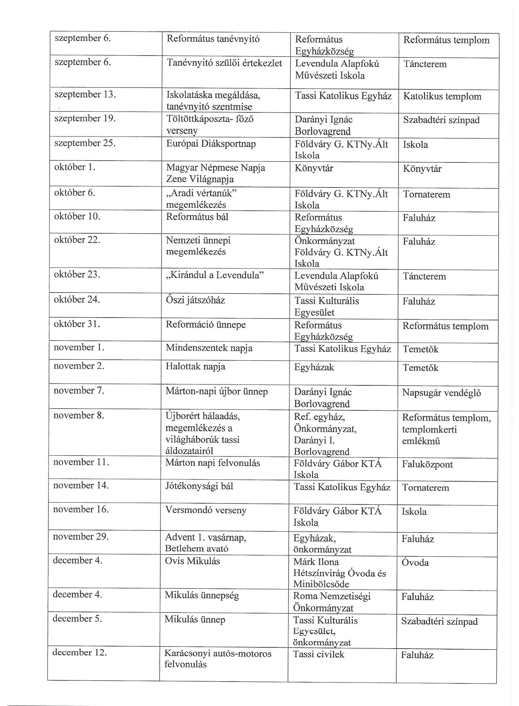 • Tassi Református Egyház hírei