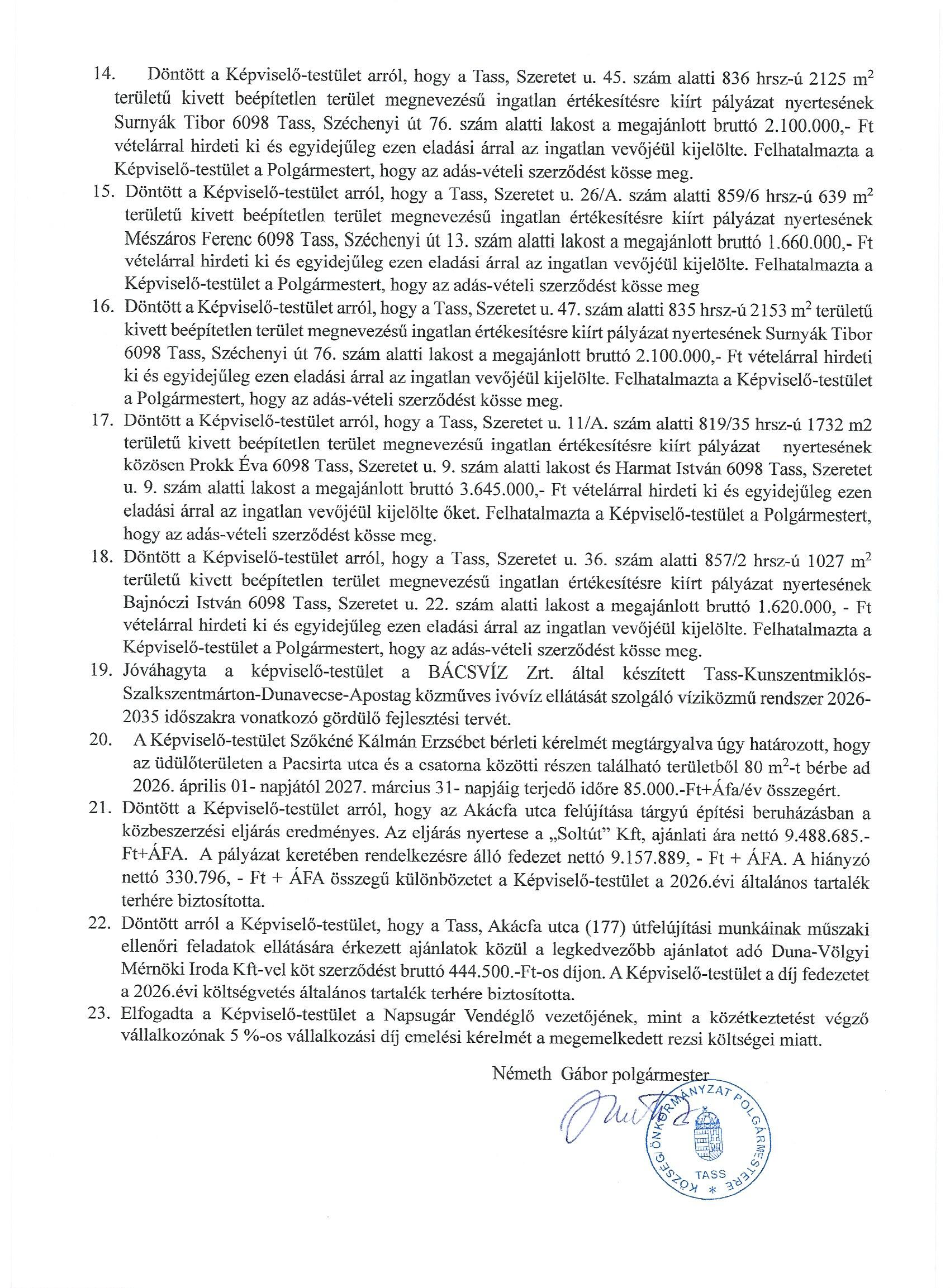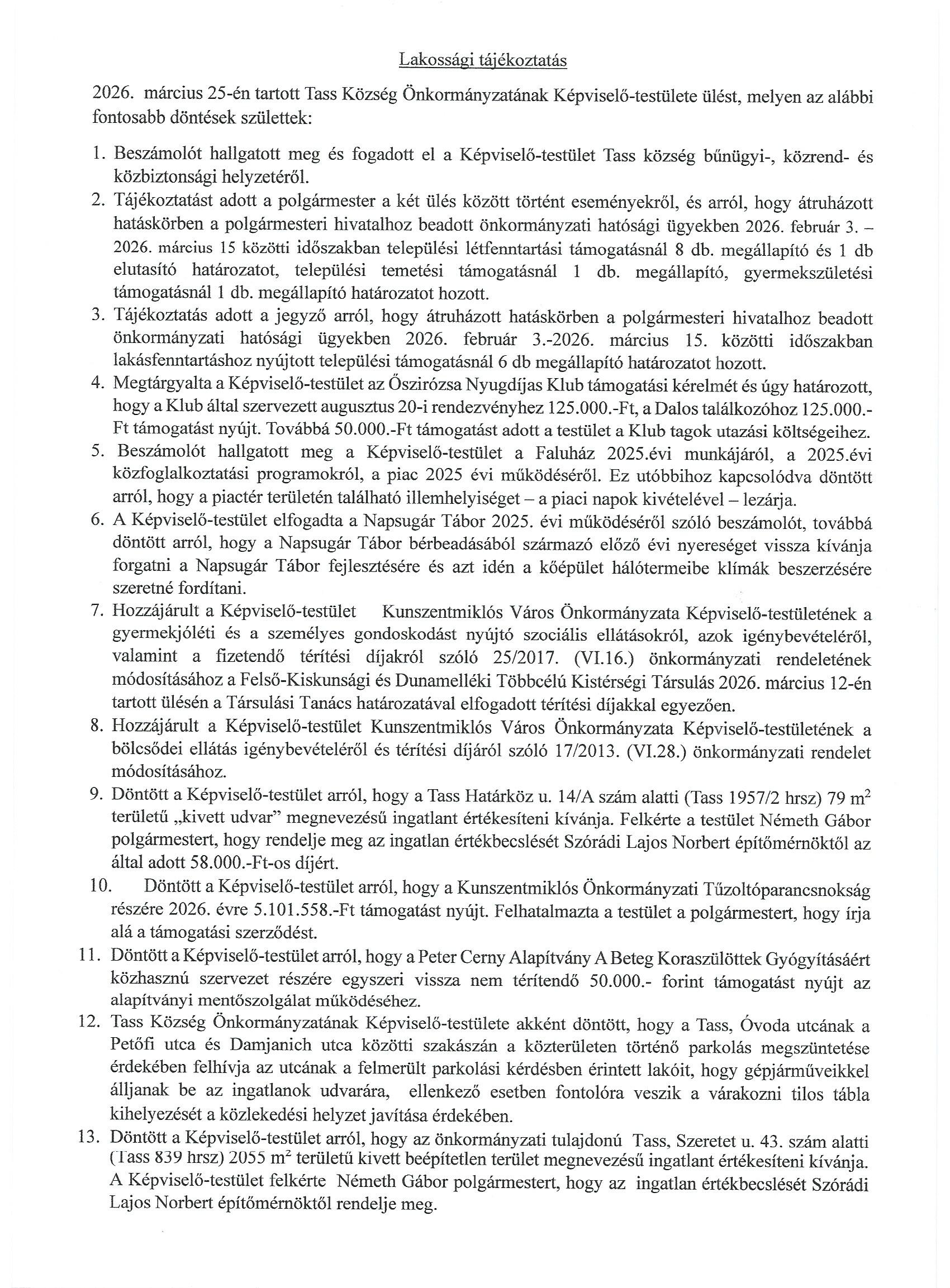 Képviselő-testületi ülés Március 25- döntések